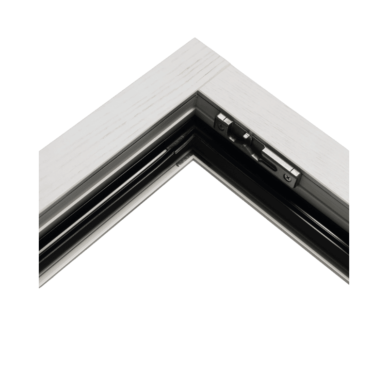 Il fermavetro integrato conferisce un aspetto elegante e minimale, garantendo una perfetta continuità visiva tra anta e vetro.
